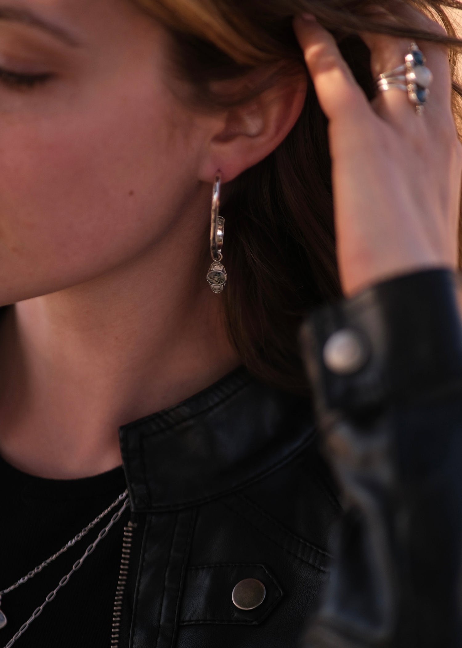 Each piece is hand-fabricated in sterling silver and gold, featuring natural stones chosen for their character and beauty.