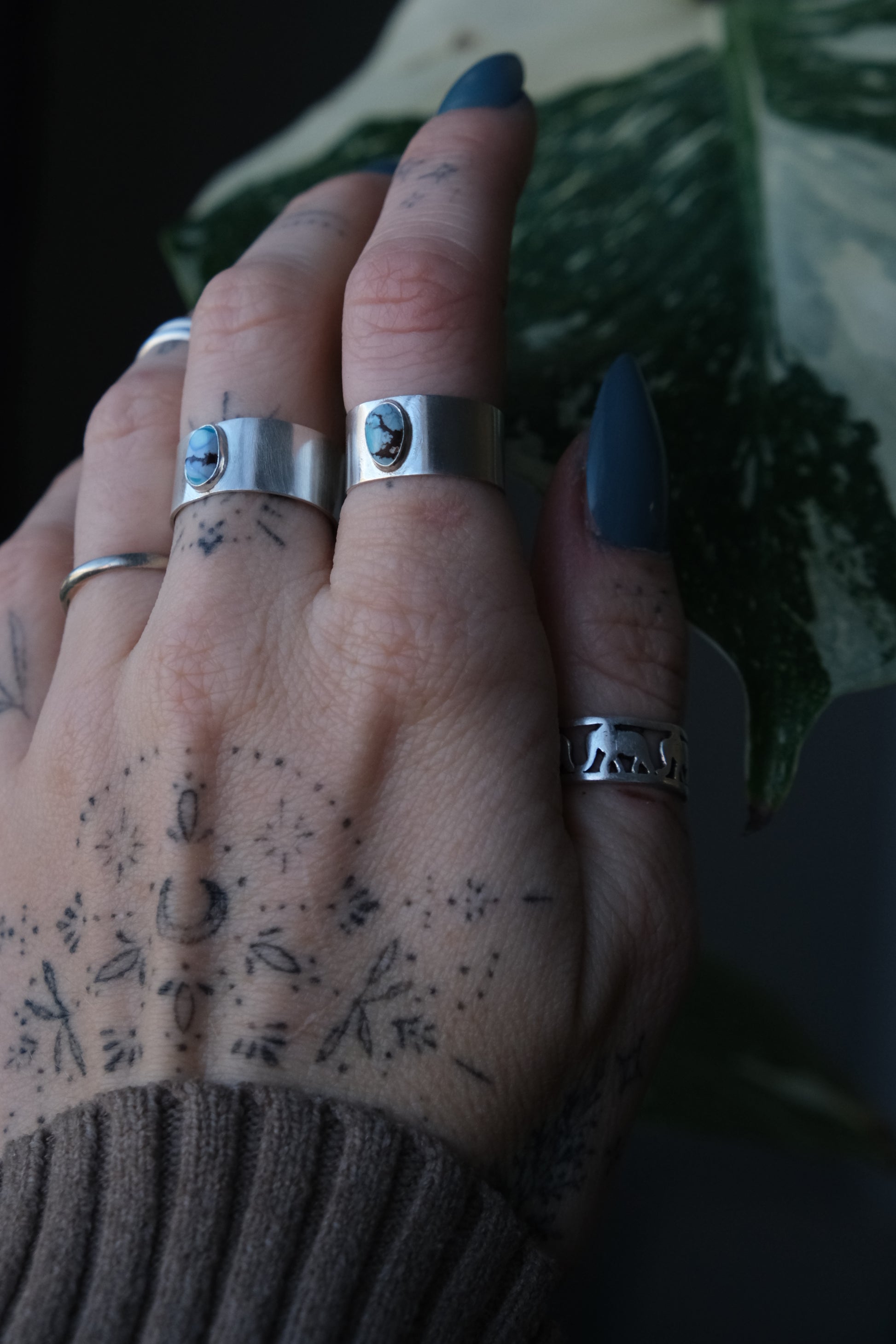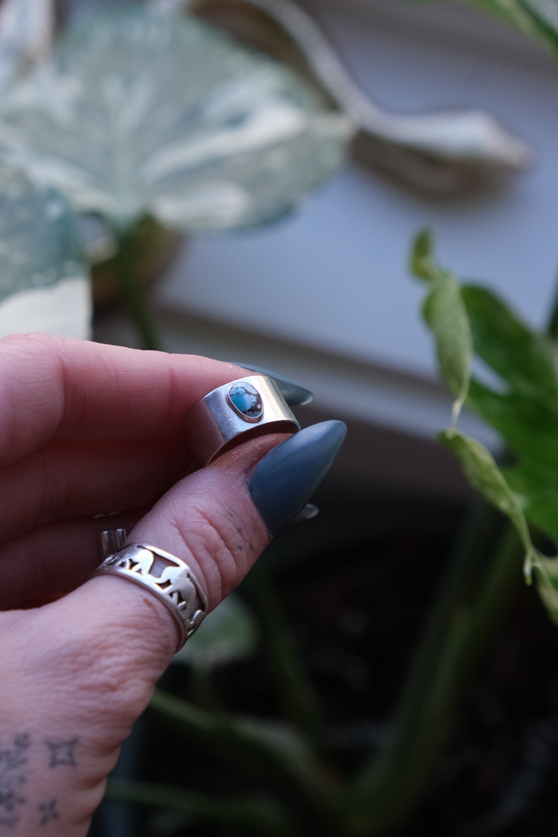 Turquoise Cigar Band Ring -size 6.75